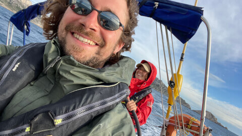 De retour en terre gauloise on s'active pour trouver une embarcation ! Préparation de la transat oblige... on se lance dans des cours de voile avec notre partenaire la Macif Centre de Voile qui a été séduit par notre expédition sans avion. Session #1 Marseille, son soleil et ses calanques. Session #2 La Rochelle, sa grisaille, et quelques huitres. Petit à petit, on se familiarise avec le vocabulaire et les manoeuvres et on dirait... qu'on est piqués ! De nouvelles sensations qui ne font qu'augmenter notre excitation à l'idée de traverser l'océan. Une aventure exceptionnelle se prépare et on met mille et une cannes à l'eau pour trouver l'équipage rêvé. Highlights : - Apprendre les noeuds de marins au mouillage à l'heure de l'apéro - Naviguer pendent 1 semaine avec 25 noeuds de vent - Croiser Plastic Odyssey au vieux port de Marseille - Recevoir la visite de notre ami québecois Chuck et rencontrer son nouveau né - Retrouver nos amis marseillais rencontrés quelques mois plutôt ! Next stop : La Transatlantique